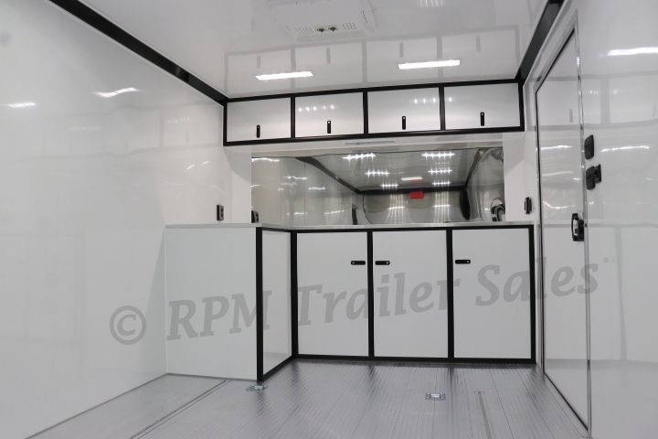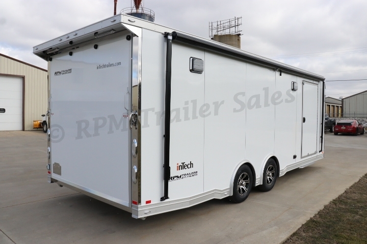 24′ inTech All – Aluminum Race Trailer with our popular iCon Package, 50 Amp Electrical, L Base cabinets with black anodized trim package, stainless steel back splash, AC and more. Contact RPM Trailer Sales for information on this Custom Aluminum Race Car Trailer.