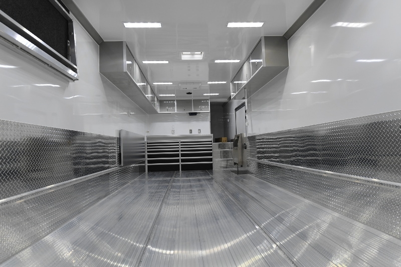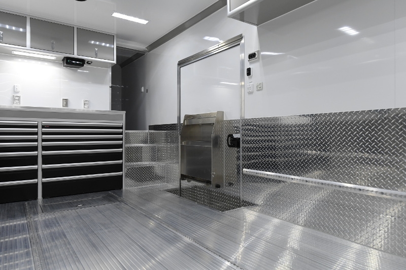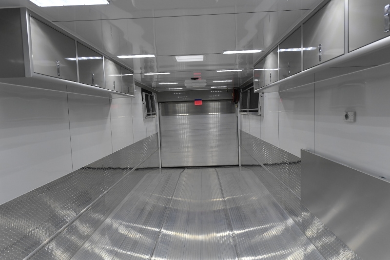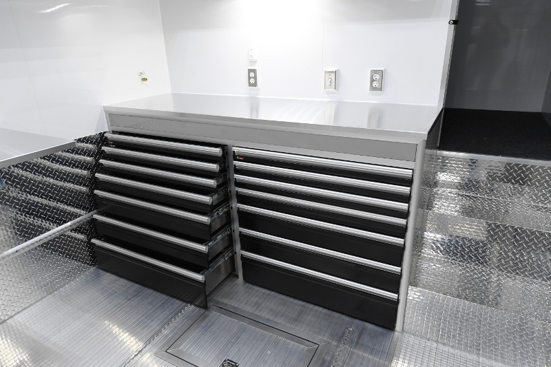 This 38’ inTech aluminum gooseneck trailer features a custom trailer design that offers a basement – subfloor for storage, custom C-Tech Aluminum Tool Chest, 7KW Onan Generator Package with in Frame Fuel Tank. It also includes a fuel filling station and 40-gallon fuel tank to fuel your motorsports equipment right on site. Design and Usability run hand in hand when we take to the drafting table. Performance, Dependability and Quality Construction are key elements of every trailer we design. RPM Trailer Sales meets each owner’s unique requirements. Plus, we’ve got years of experience in designing work areas to match your work routine perfectly – only exceeding your expectations.