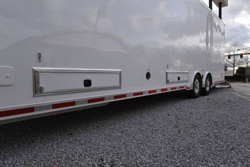 No stones left unturned when it comes to custom building your next motorsports race trailer. This 38′ Custom Race Trailer has much to offer and is a must see design.
