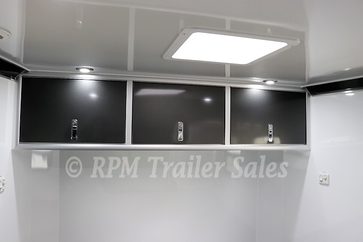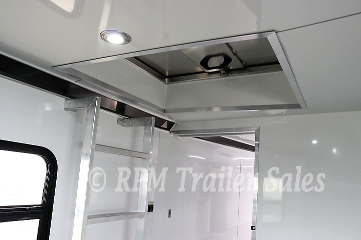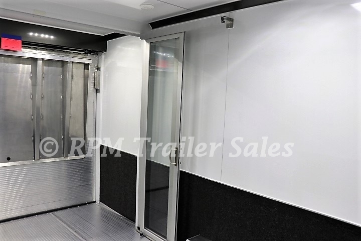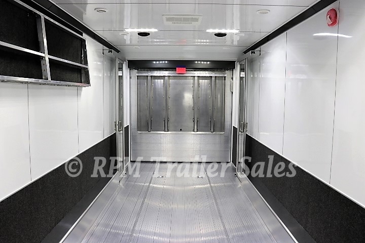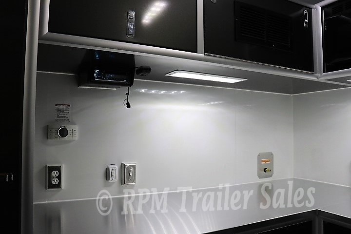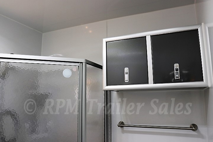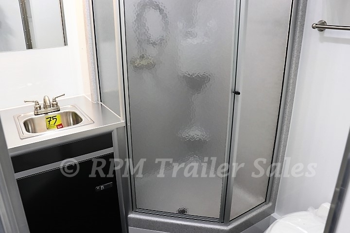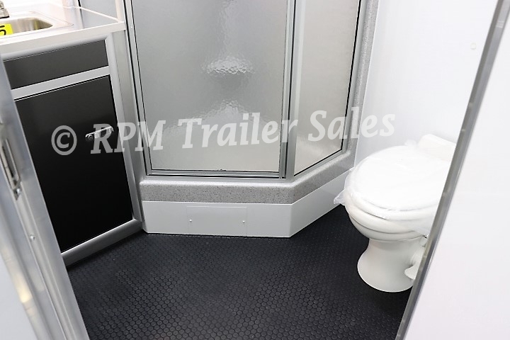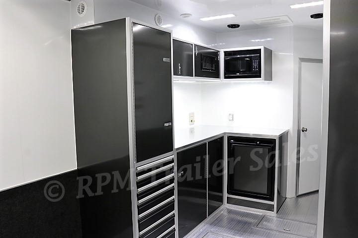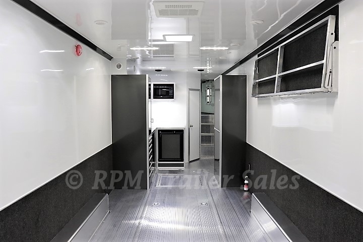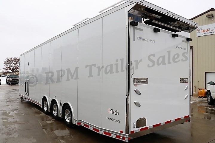 44′ inTech Aluminum Race Trailer with Bathroom Package for Sale. Some toys aren’t meant to be shared and this 44’ inTech Aluminum Race Car Trailer with Full Bathroom Package is one of them. When you are ready to hit the road with a custom aluminum trailer designed by RPM Trailer Sales, the options are endless! The BOLD classic look of an amazing aluminum trailer starts out with your dream. This 44’ custom bathroom package trailer offers distinct customization for someone with the fastest race cars, luxury cars, intriguing toys, UTV, Sandrail, and so much more. The highly sought-after ease of use comes with all our custom trailer designs. Have no fear with this aluminum race trailer, your weekends at the track will be better than ever. Let’s go beyond the amazing details of the exterior and see all the interior greatness included with this amazing inTech Trailer. This inTech Aluminum bathroom package trailer includes 8’ interior height, custom cabinet package, 34” high carpet on interior walls, custom RPM C-Tech tool cabinet, 8’ Fold up Tire Rack, 7KW Onan generator package and so much more. To see this amazing trailer, is to believe it!