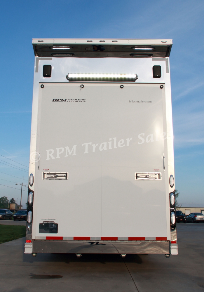 New 48′ Custom designed inTech Aluminum Gooseneck Sprint Car Trailer featuring our sprint car loading package and loaded with custom aluminum cabinets, Bard AC, motor storage, custom tool chest and more.