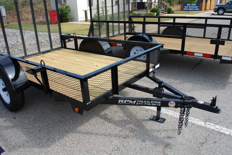 5X8 HEAVY DUTY SINGLE AXLE TRAILER 14″ HIGH MESH SIDES 15” TIRES 3500# E-Z LUBE AXLES FOLD – UP JACK 4′ GATE GATE UPRIGHTS ON 12″ CENTERS TREATED 2 X 8 WOOD FLOORING 3 PIECE TONGUE SMOOTH FENDERS W/ BACKS CLEARANCE & MARKER LIGHTS SPARE TIRE MOUNT NATM COMPLIANT
