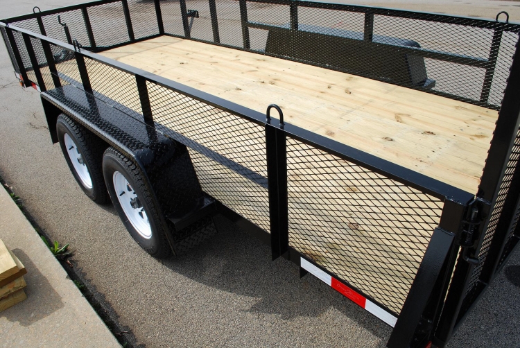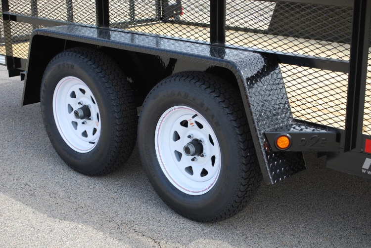Standard Features: 24″ High Mesh Sides 15” Tires 2) 3500# E-Z Lube Axles A- Frame Jack 4′ Gate Gate Uprights on 12″ Centers Treated 2 x 8 Wood Flooring Wrap-A-Round 4″ Channel Tongue Tread Plate Fenders Tail Light Guards 10K 2 5/16″ Coupler Brakes on Both Axles LED Clearance & Marker Lights Spare Tire Mount NATM & DOT Compliant