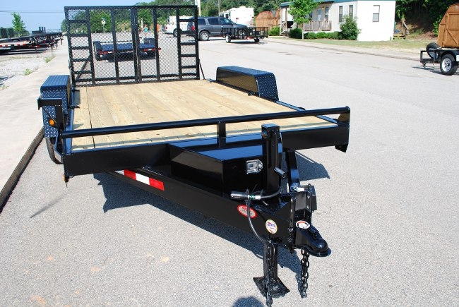 82″ x 14′ All Purpose Heavy Duty Equipment Trailer 2) 5200# E-Z Lube Axles 6 Lug Tires & Wheels Brakes on Both Axles Stake Pockets Tread Plate Fenders Wrap-A-Round Tongue 2′ Dove Tail Split Heavy Duty Gate with 5′ Channel Ramps Treated Pine Floor 10k Spring Loaded Drop Leg Jack Adjustable 2 5/16″ Coupler Tool Box on Tongue Enclosed Tail Light Boxes Sealed Wiring Harness LED Clearance & Marker Lights Grommet Mounting Lighting Spare Tire Mount NATM & DOT Compliant