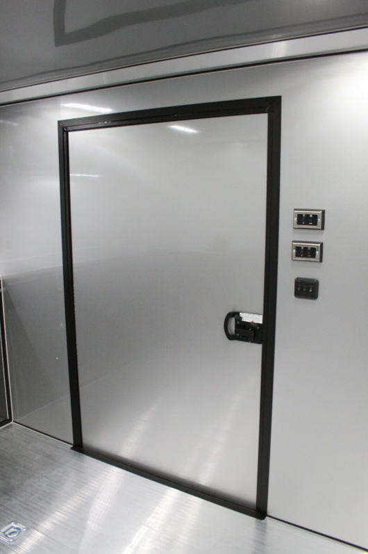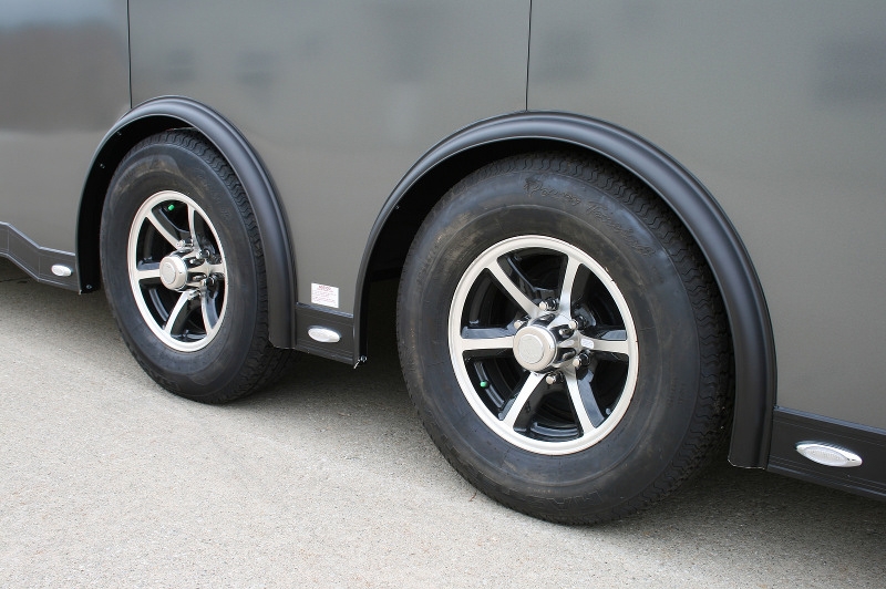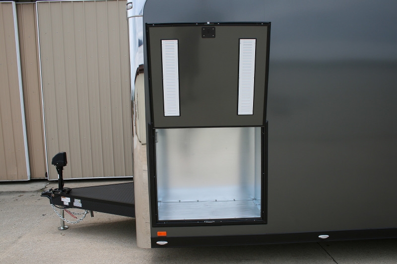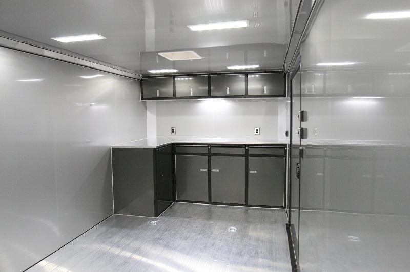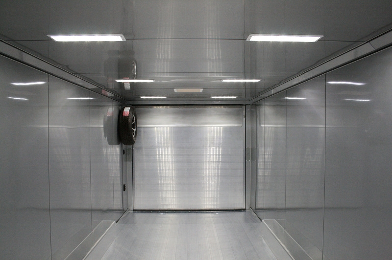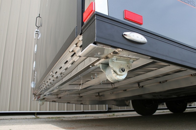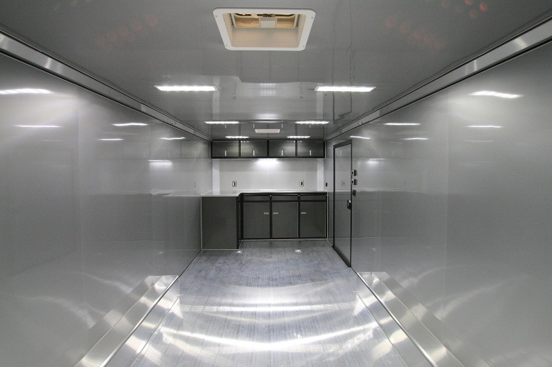 This inTech aluminum car hauler is set up to transport your car in style. The fully anodized exterior and interior aluminum package not only accents the trailer beautifully, but also protects the aluminum for a lifetime against any kind of corrosion. The top and bottom trim feature a rivetless installation, so there are no exposed fasteners giving the trailer an ultra-clean appearance. The exterior curbside features super bright and low amp 12V Whelen lights.