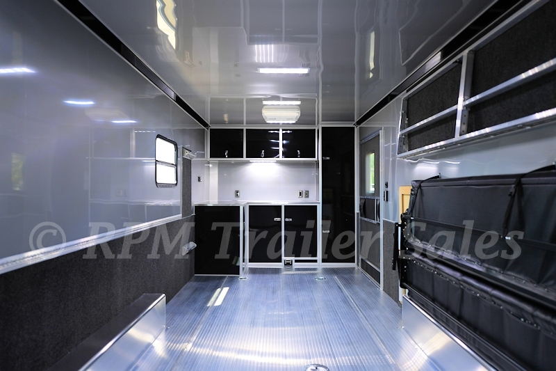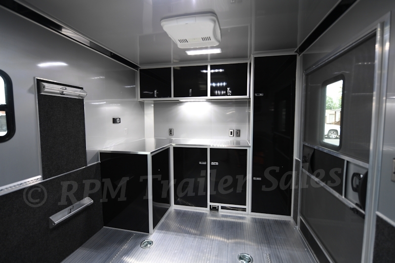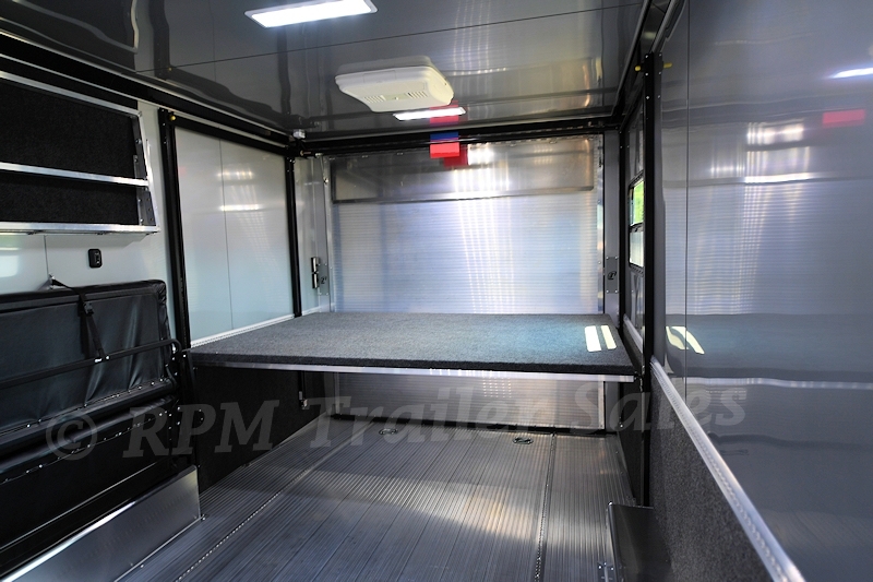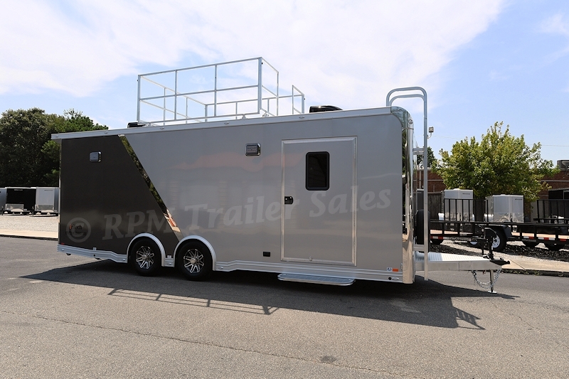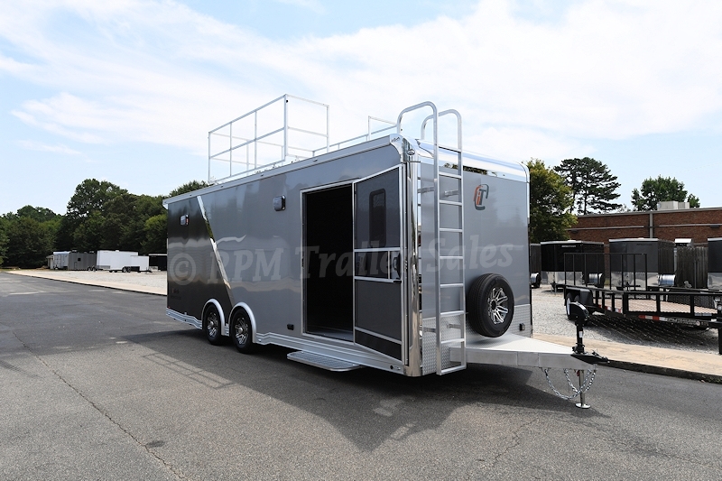 24′ inTech Aluminum Car Trailer with 7.5′ interior height, electric Happi Jack Bed, premium aluminum cabinet package, electrical package, observation deck, and so much more. This amazing custom trailer is a must see!