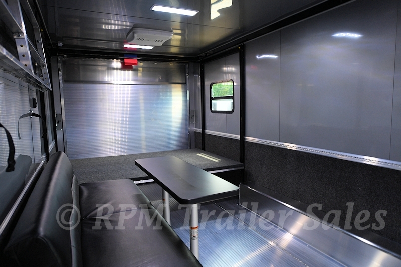 24’ Custom inTech Aluminum Car Trailer. It’s beautiful out on the open road, so why not enjoy it with a new Custom Trailer designed by RPM Trailer Sales. This is personalization at its finest. The exterior boast luxury with our Custom Two-Tone Exterior with Stainless Steel Center Trim. The fully anodized exterior aluminum trim package protects the aluminum for a lifetime against any kind of corrosion. Our popular rear spoiler design makes this custom trailer the envy at any event, with integrated LED loading lights. And let’s not forget the Heavy Duty Walk on Roof with Observation Deck and Viewing Rails! This trailer screams adventure. Now if you thought the outside was amazing you have to check out the inside..