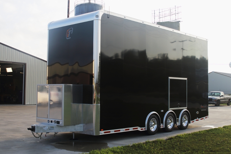 24′ Custom inTech Aluminum Stacker Trailer with triple 7,000 lb. Dexter Axles, two of our popular escape doors, custom cabinets, 34″ high carpet on interior walls and so much more. This all aluminum stacker trailer is a must see!