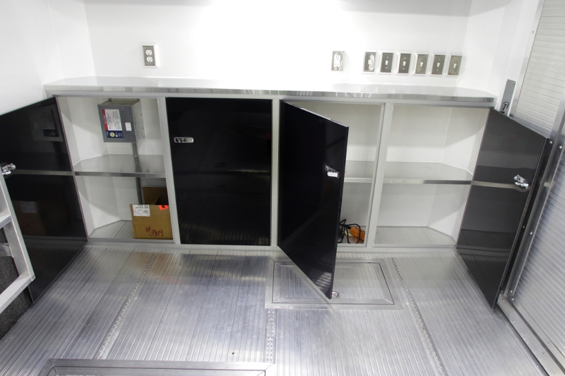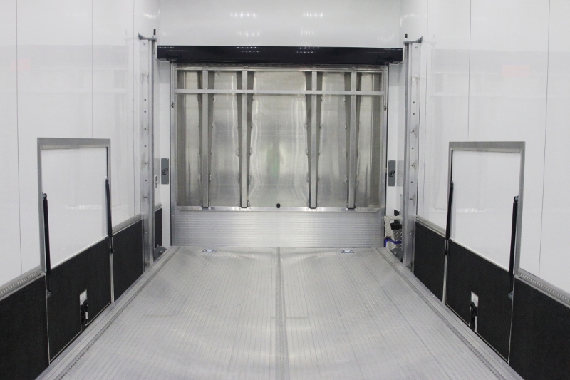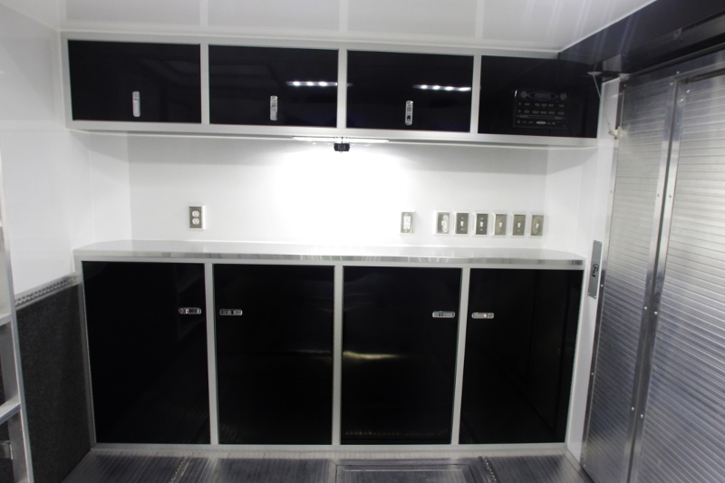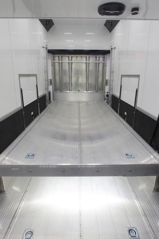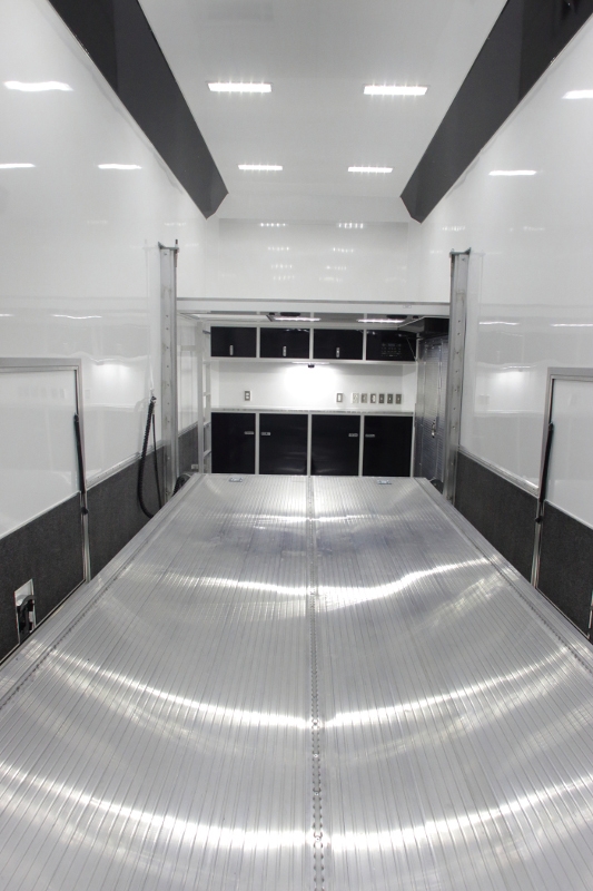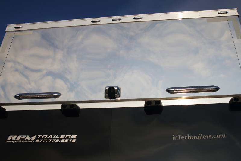 Brad Sellers, our owner and our custom stacker trailer designer will take care of each of your needs and wants to design you the best aluminum stacker trailer to fit your routine perfectly. This incredible 24’ double stacker car hauler has a little bit of everything under the roof. Featuring 2 escape doors for getting out of your car with ease & allowing great access for tying them down. The black aluminum base and upper cabinets make a bold statement. This inTech aluminum stacker trailer also includes a stereo package, infloor winch box and winch, and no shortage of lights inside or outside for this beauty, it’s loaded with LED’s. We’ve got 34” high carpet on interior walls and much more. If you haven’t already, take a good look at the extreme value that RPM Trailer Sales offers, you might just be surprised at just how much trailer you can get for your hard-earned dollar.