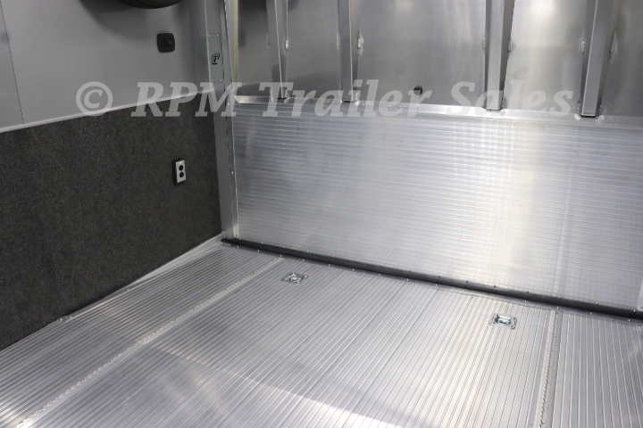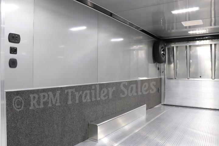 No shortage of lights inside or outside for this beauty, it’s loaded with LED’s. The spare tire wall mount keeps the spare up and out of the way. This trailer also has two full runs of our popular airline track for endless tiedown points running the length of the trailer. If that wasn’t enough this trailer comes in weighing only 4,715 lbs. If you haven’t already, take a good look at the extreme value that RPM Trailer Sales offers, you might just be surprised at just how much trailer you can get for your hard-earned dollar.