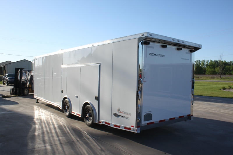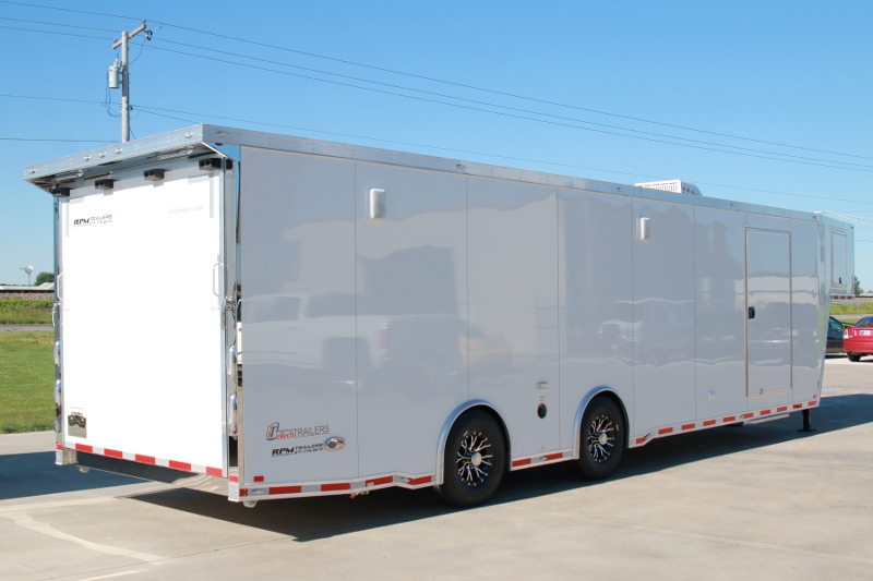 Make your presence felt and let RPM Trailer Sales take you there in style! When you’re looking for the perfect, well-equipped, Custom aluminum Race Trailer, look no further than the awesome team of custom aluminum trailer designed by the industry leader, RPM Trailer Sales. This amazing 38’ Custom Aluminum Gooseneck Trailer was designed for a racer with a vision. Whether you are hauling race cars, show cars, ATV’s, sport boats, personal watercraft, or a spiced up sandrail, RPM can build the perfect set up for all your hauling needs. RPM Trailer Sales is perfecting perfection.