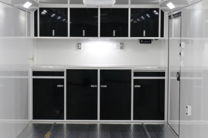 This 38’ inTech aluminum gooseneck trailer features a custom trailer design that offers our popular iCon Package, custom cabinet design, 5.5KW Onan Generator Package with in Frame Fuel Tank. It also includes a full width ramp extension for those cars that set extremely low to the ground. Don’t forget to check out the layout for all the LED Lights angle mounted in the cove for a sleek and bright design. Design and Usability run hand in hand when we take to the drafting table. Performance, Dependability and Quality Construction are key elements of every trailer we design. RPM Trailer Sales meets each owner’s unique requirements. Plus, we’ve got years of experience in designing work areas to match your work routine perfectly – only exceeding your expectations.