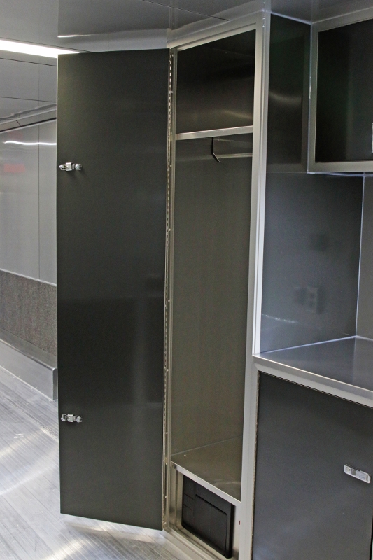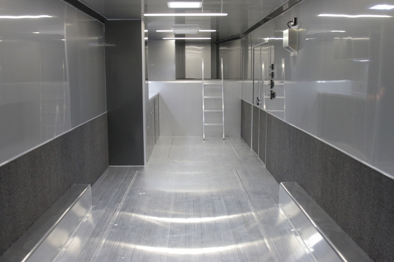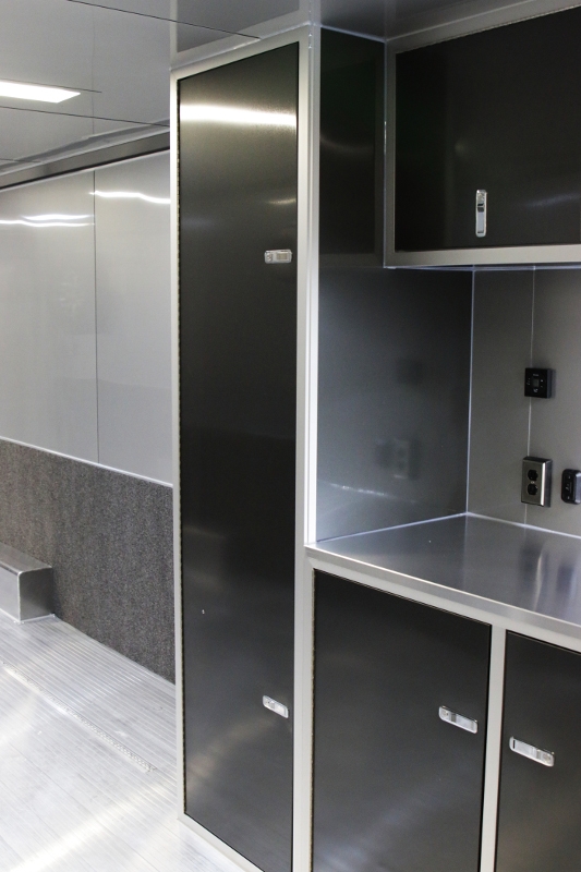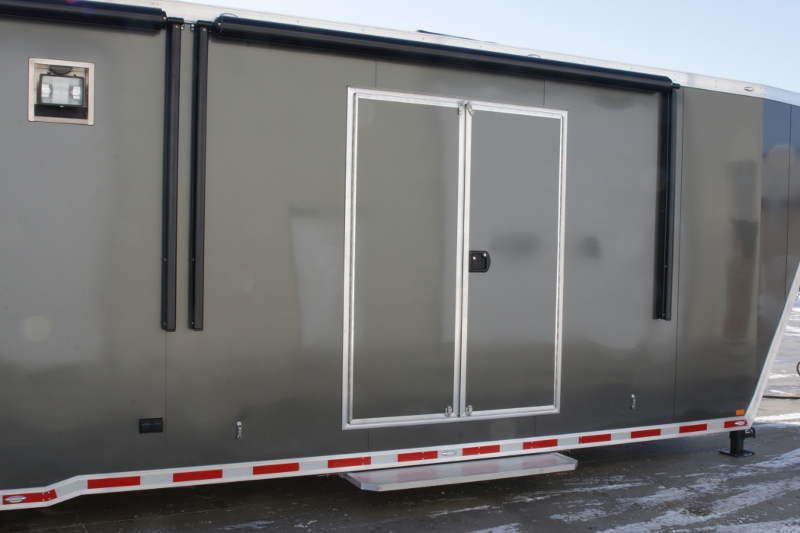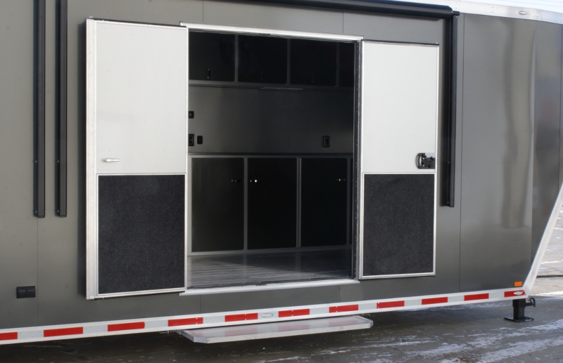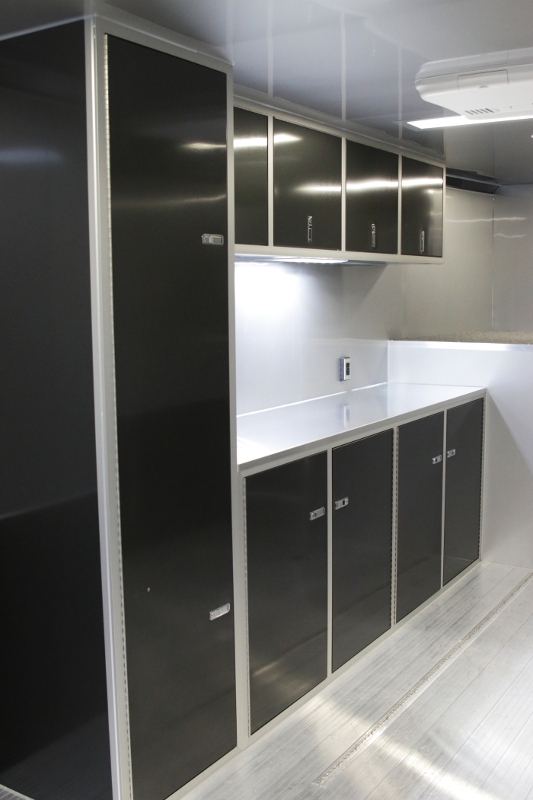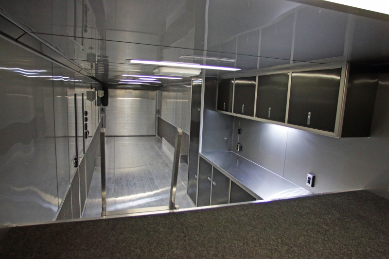 A few of the options include: 50 amp electrical package, custom cabinet configuration, airline track tie down system, roof mount air conditioner and much, much more! If you are looking for a race car transporter, then you have come to the right place. Our Aluminum Race car haulers are the best!