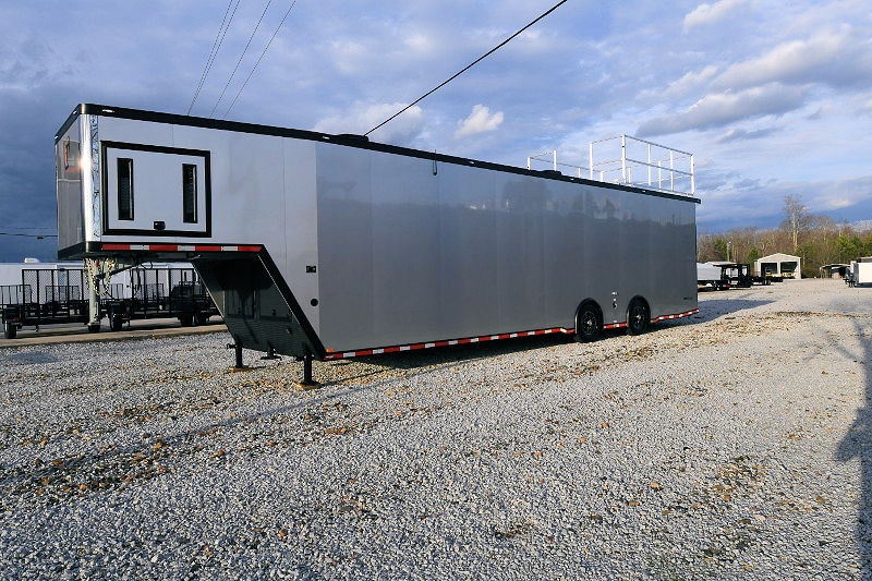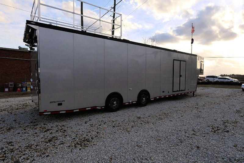 Make every journey a personal one with a custom race car trailer by RPM Trailer Sales. Check out this amazing 42’ All Aluminum Gooseneck Race Car Hauler. When you’re looking for the perfect, well-equipped, Custom Gooseneck Trailer, look no further than the awesome team of custom trailer designers at RPM Trailer Sales. We’ve taken our most popular options and included them into a bundle of custom options, chosen specifically by the customer, for one amazing Race Car Hauler and added one pretty amazing setup that includes many of our most popular options. This 42’ inTech aluminum gooseneck trailer features a custom trailer design that boast a custom aluminum cabinet design, 7KW Onan Generator Package with 25 Gallon in Frame Fuel Tank. It also includes sliding glass doors, 8’ wall mounted -fold up tire rack, full walk on party roof with observation deck, and our popular C-Tech Tool Chest and so much more. Performance, Dependability and Quality Construction are key elements of every trailer we design. RPM Trailer Sales meets each owner’s unique requirements. Plus, we’ve got years of experience in designing work areas to match your work routine perfectly.