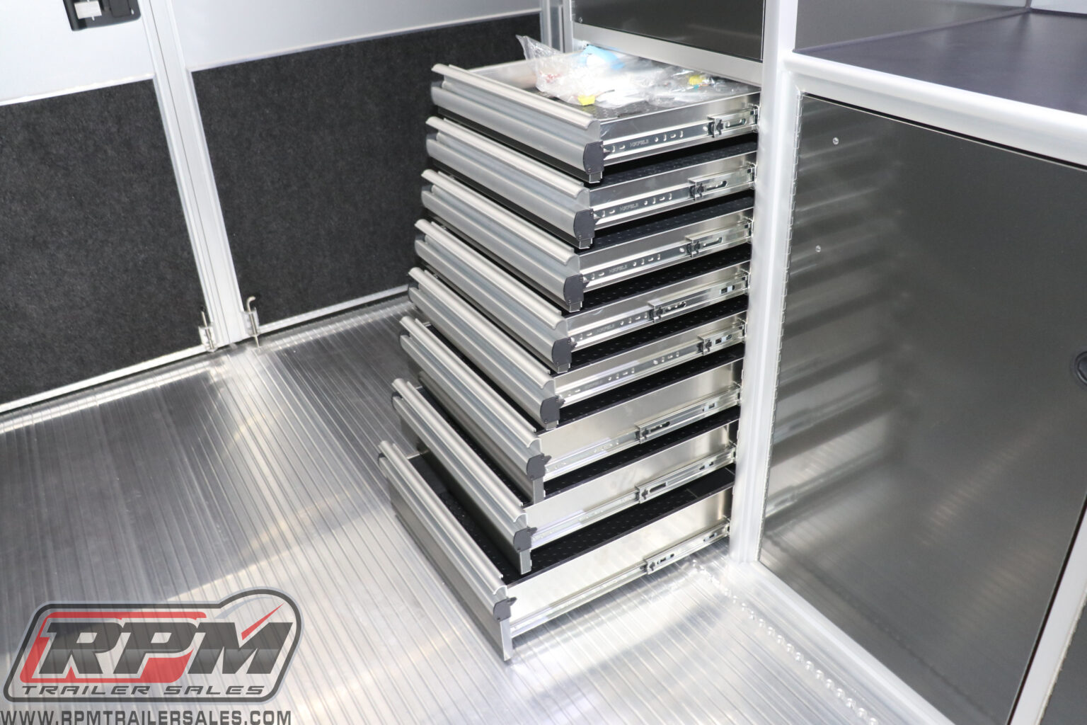 This 44′ Aluminum Gooseneck Trailer includes 12KW Onan Generator Package, Mini Split 36K Air Conditioner, Double Rear Doors and more.