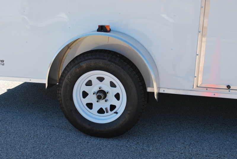 Standard Features: 16″ O/C Cross Members 24″ O/C Roof Members 16″ O/C Sidewalls 2000lb A-Frame Jack w/Sand Foot 2″ Coupler 3” Steel Tube Main Frame 32” Side Door w/ Flush Lock White Aluminum Metal 75” Interior Height 3/4″ Plywood Floor 3/8″ Plywood Interior Walls 1) 12volt Dome Light White Spoke Wheel ST205 15″ Bias Ply Tires Smooth Aluminum Fenders Gavalume Roof Non-Powered Roof Vent 24” Stoneguard 2990 lb Drop Leaf Spring Axle Flat 4 Way Plug / Pigtail Barn Doors E-Z Lube Hubs Door Hold Back Rear Door Handle V-Nose w/ ATP Deluxe License Plate Holder