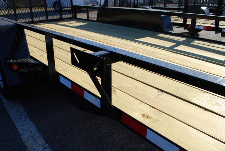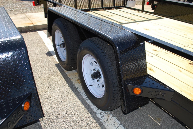 Standard Features: 15” Tires 2) 3500# E-Z Lube Axles A- Frame Jack 4′ Gate Gate Uprights on 12″ Centers Treated 2 x 8 Wood Flooring Wrap-A-Round 4″ Channel Tongue Tread Plate Fenders Tail Light Guards 10K 2 5/16″ Coupler Brakes on Both Axles LED Clearance & Marker Lights Spare Tire Mount NATM & DOT Compliant