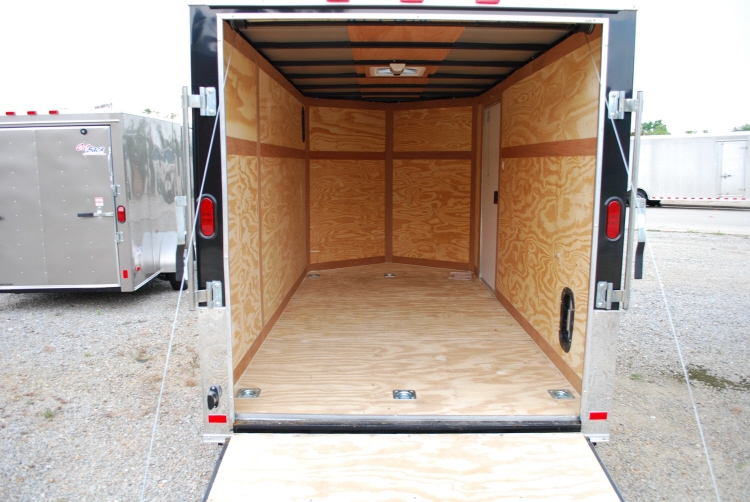 Standard Features: 16″ O/C Cross Members 24″ O/C Roof Members 16″ O/C Sidewalls 2000lb A-Frame Jack w/Sand Foot 2″ Coupler 3” Steel Tube Main Frame 32” Side Door w/ Flush Lock White Aluminum Metal 75” Interior Height 3/4″ Plywood Floor 3/8″ Plywood Interior Walls 1) 12volt Dome Light White Spoke Wheel ST205 15″ Bias Ply Tires Smooth Aluminum Fenders Gavalume Roof Non-Powered Roof Vent 24” Stoneguard 2990 lb Drop Leaf Spring Axle Flat 4 Way Plug / Pigtail Ramp Door w/ Transition Flap E-Z Lube Hubs Door Hold Back Rear Door Handle V-Nose w/ ATP Deluxe License Plate Holder